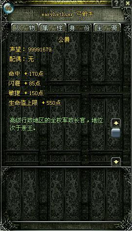 声望的成长,可通过主城的新NPC皇宫引路人【天朝(184,180)、帝国(160,164)领取声望之心任务,完成后奖励声望之心道具。荣誉值的成长,如同声望之心,完成任务后奖励荣誉之心道具。